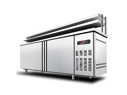2、储藏设备:其分为食品储藏部分,平板货架、米面柜、打荷台等,器物用品储藏部分调料柜、售卖工作台、各种底柜、吊柜、角柜、多功能装饰柜等;